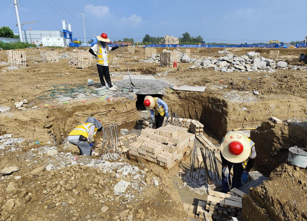 八月是施工的(de)黃金季節(jie),連日來,鳳陽縣(xian)小(xiao)崗村(cun)農產品加(jia)工產業園三期建設(she)(she)北(bei)區項(xiang)(xiang)(xiang)(xiang)目(mu)現(xian)場一(yi)片熱火朝天(tian)。為搶(qiang)抓晴(qing)好有利天(tian)氣,全力推進(jin)項(xiang)(xiang)(xiang)(xiang)目(mu)進(jin)展,確(que)保工期履(lv)約,項(xiang)(xiang)(xiang)(xiang)目(mu)部全體(ti)員工爭分奪秒趕進(jin)度,按(an)下項(xiang)(xiang)(xiang)(xiang)目(mu)建設(she)(she)加(jia)速鍵。
